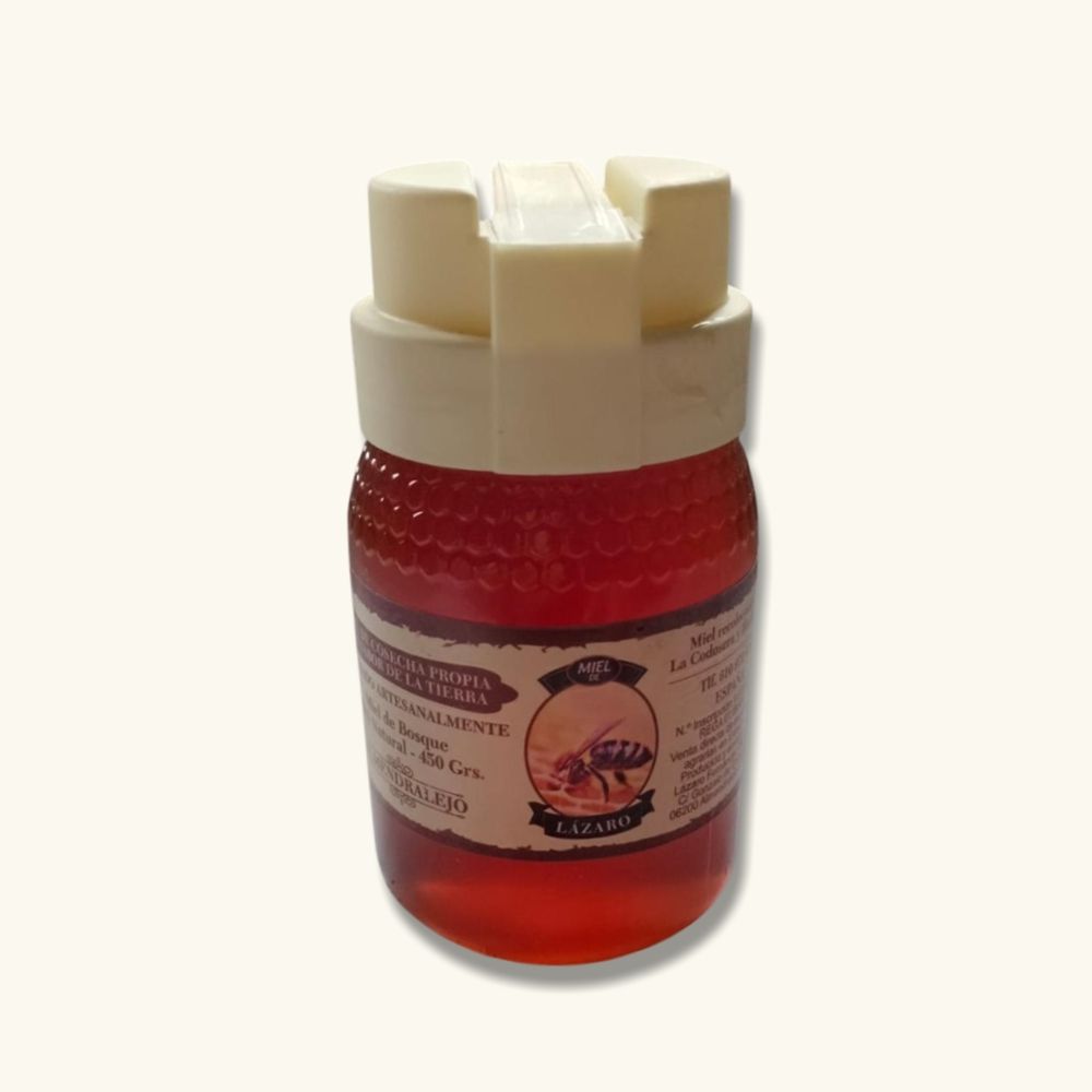 Miel de Bosque con Dosificador. Oscura, sedosa y llena de matices, la miel de bosque es un tesoro natural que nace del corazón de los árboles. A diferencia de las mieles tradicionales, no proviene sólo del néctar floral, sino de la melaza que generan especies como robles, pinos, encinas y castaños , que las abejas transforman en una miel única, profunda y con carácter.