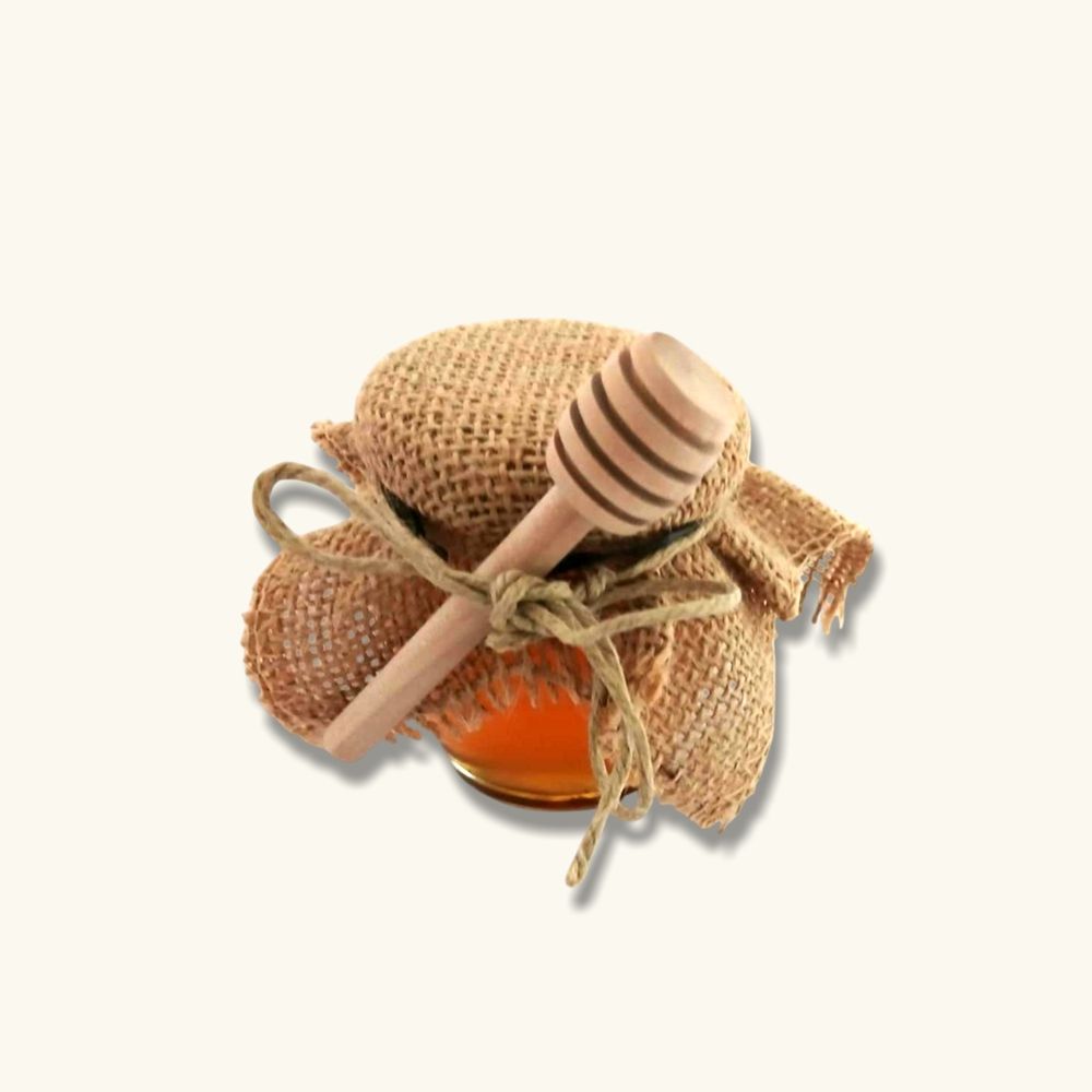 Onza y Media de Miel del Bosque con Tela y Palo. Oscura, sedosa y llena de matices, la miel de bosque es un tesoro natural que nace del corazón de los árboles. A diferencia de las mieles tradicionales, no proviene sólo del néctar floral, sino de la melaza que generan especies como robles, pinos, encinas y castaños , que las abejas transforman en una miel única, profunda y con carácter.